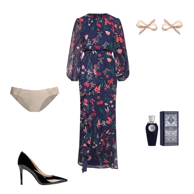 Eliza J V Neck Ruffled Printed Metallic Clip Chiffon Dress ShopStyle Very well made.