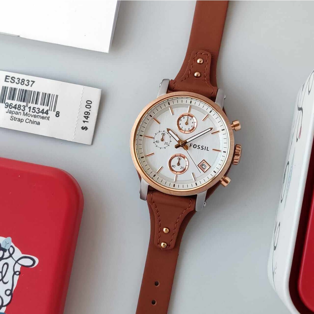 Authentic Fossil Women Boyfriend White Dial Brown Leather Watch ES3837 Jam Tangan Wanita Perempuan Shopee Malaysia Very well made.