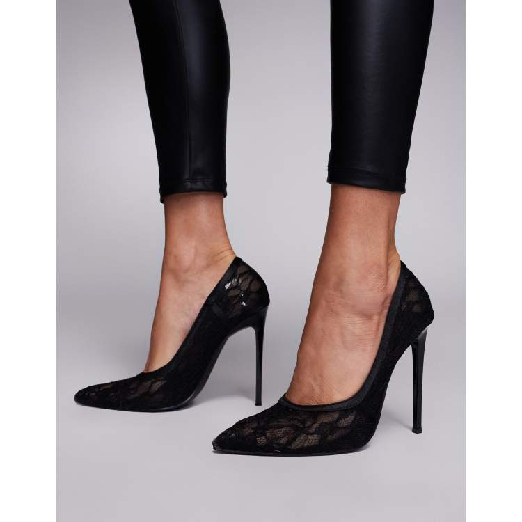 Sexy Noire Soiree Dentelle Escarpins 2023 5 cm Talons Aiguilles A Bout Pointu Talons Hauts Very well made.
