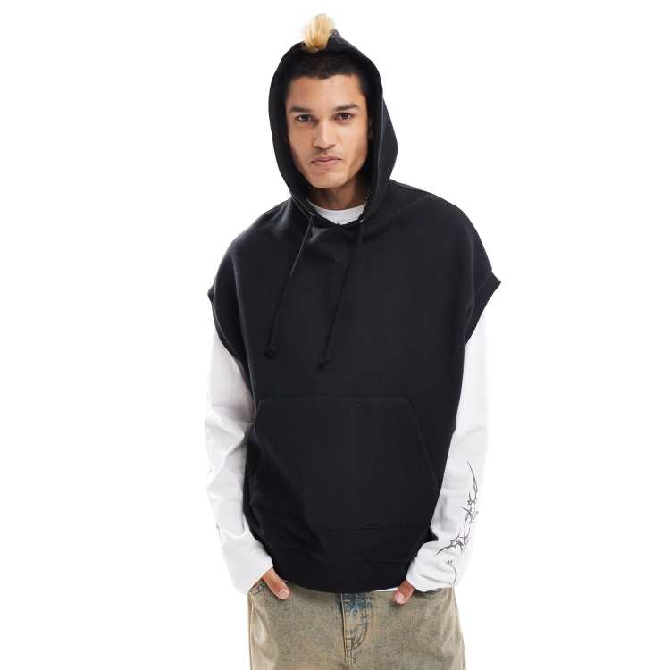 COLLUSION sleeveless vest hoodie in black with faux fur trim hood and print ASOS Very well made.