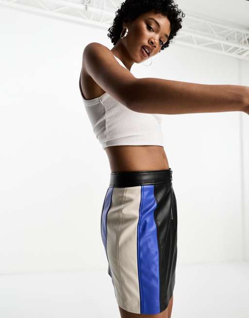 Only faux leather motor mini skirt in black and blue part of a set ASOS Very well made.