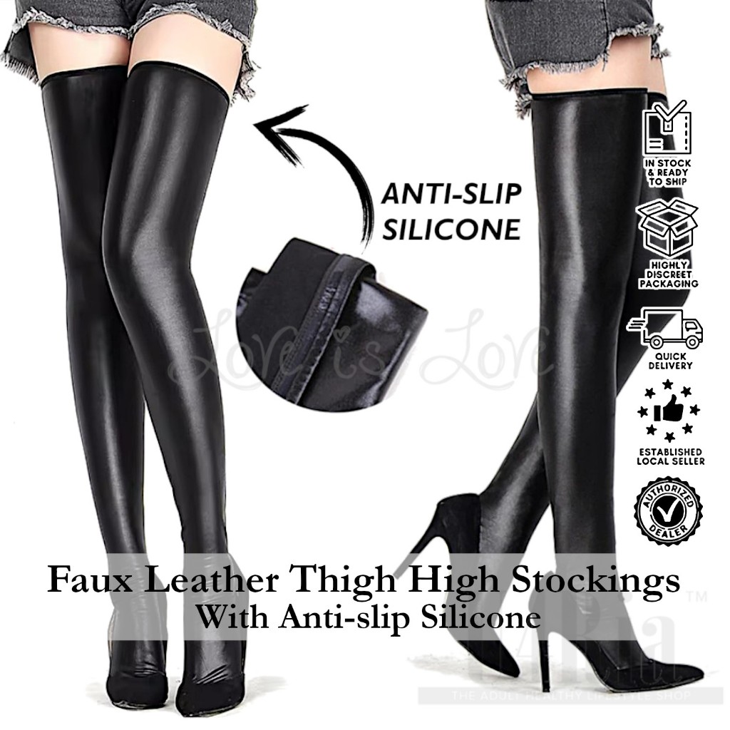 Stockings Faux Leather Black Tigh High Boots Socks Toeless 85cm 33inches Extra Long at Amazon Women s Clothing store Very well made.