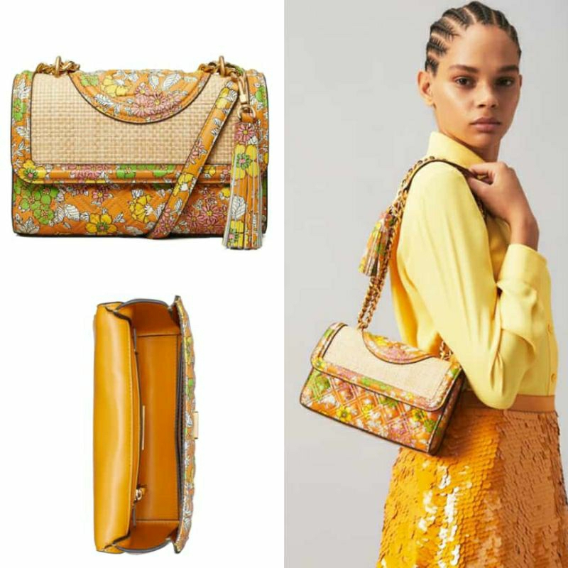Tory Burch 76962 Fleming Printed Straw Small Convertible Shoulder Bag Natural Butternut Very well made.