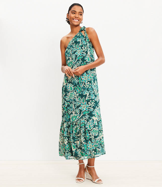 Petite Floral Crinkle Flounce One Shoulder Maxi Dress Very well made.