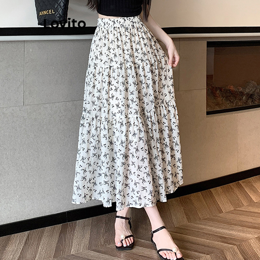 Lovito Casual Ditsy Floral Flowers Ball Gown Skirt for Women LNE17088 White Shopee Singapore Very well made.