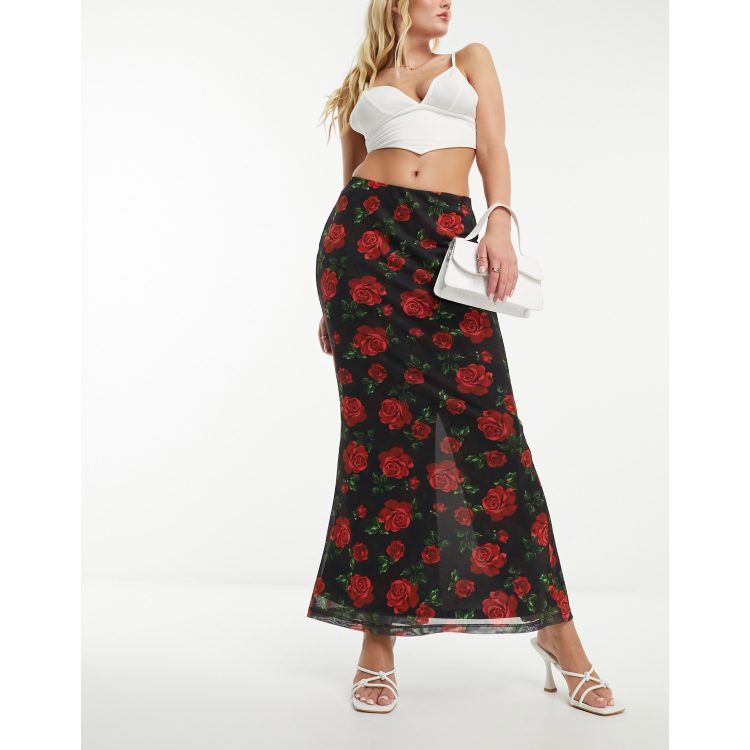 Ever New mesh maxi skirt in black rose print ASOS Very well made.