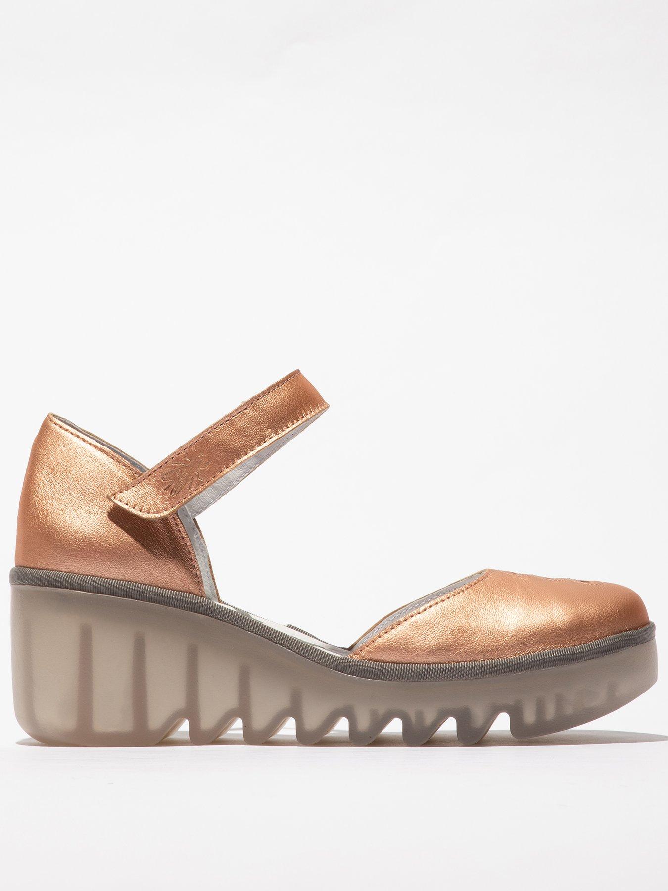 Fly London Biso Rounded Toe Leather Heeled Shoes Blush Gold Very well made.