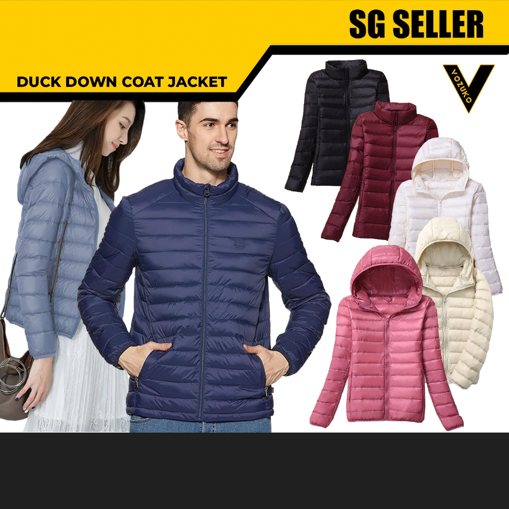 VOZUKO Lightweight Down Coat Unisex Jacket Autumn Winter Coat Duck Down Hooded and Non hooded Coat Foldable Shopee Singapore Very well made.