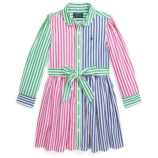 Ralph Lauren Childrenswear Girl s Striped Cotton Poplin Fun Shirt Dress Size 4 Very well made.