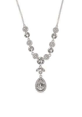 Givenchy Silver Tone Crystal White Pearl Y Necklace Dillard s Very well made.