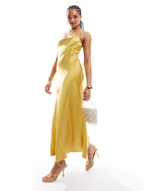 Bardot silky satin maxi dress in gold Very well made.