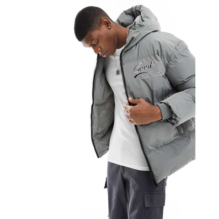 Good For Nothing hooded puffer jacket with logo in sage green Very well made.