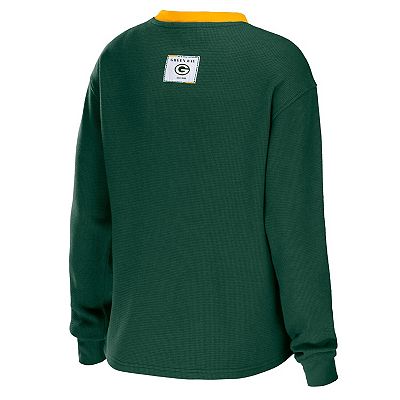 Women s WEAR by Erin Andrews Green Green Bay Packers Waffle Henley Long Sleeve T Shirt Very well made.