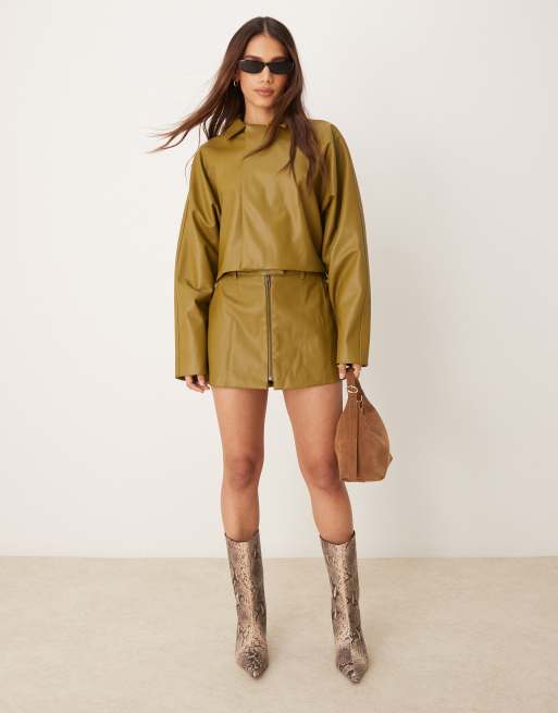 ASOS DESIGN faux leather ultimate utility mini skirt in khaki Very well made.