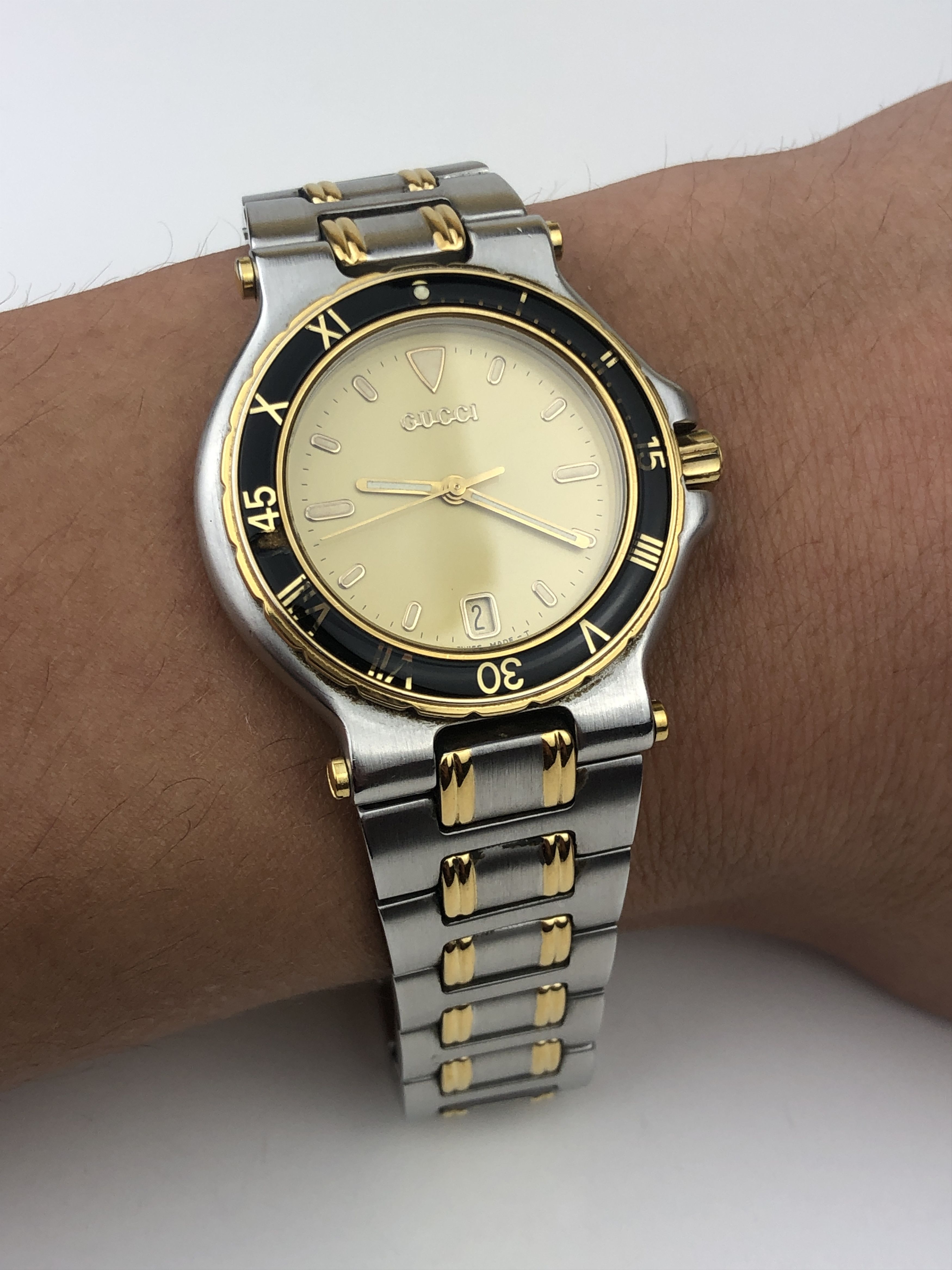 Vintage 1991 Gucci Submariner Watch 9700M WATER AND GOLD Very well made.