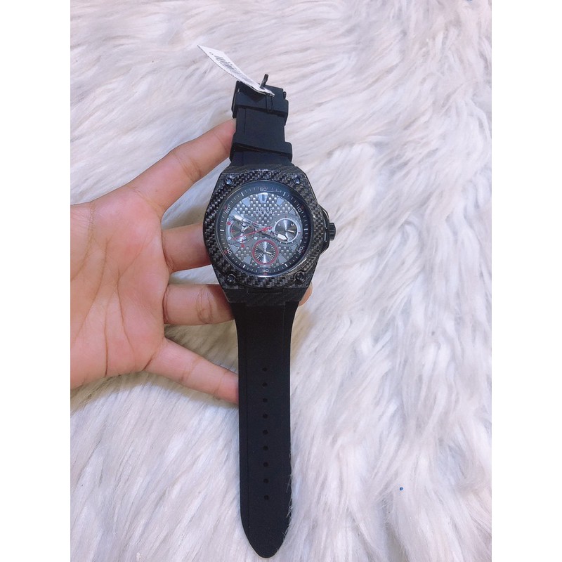 Guess Legacy Black Dial Black Rubber Strap Watch For Men Very well made.
