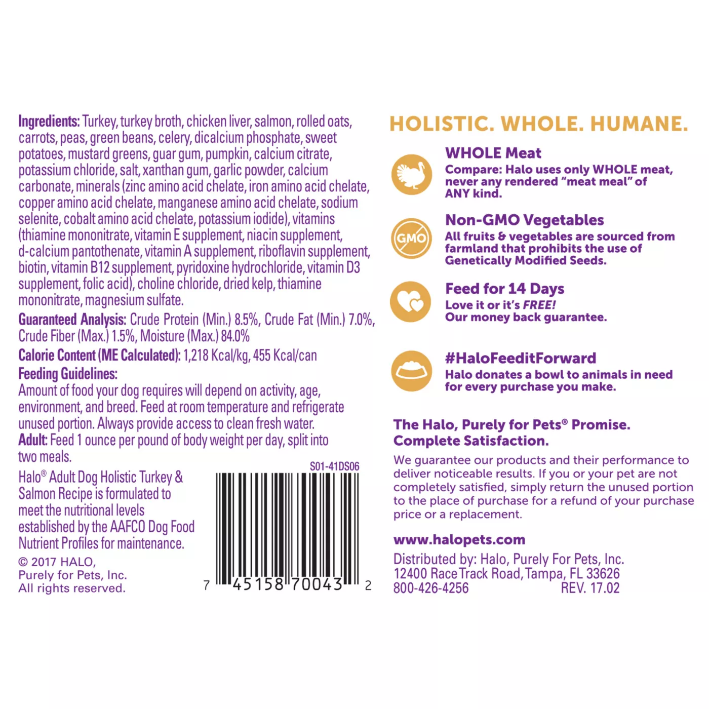 HALO Adult Dog Food Natural Holistic Turkey Salmon Recipe Very well made.