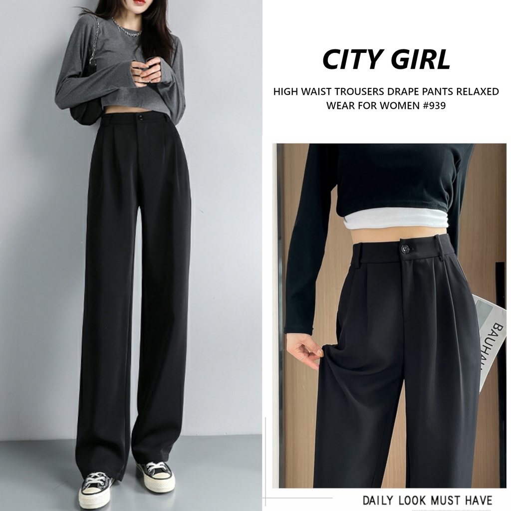 CITY GIRL Smooth texture high waist trousers drape loose and relaxed casual wear for women 943 Shopee Philippines Very well made.