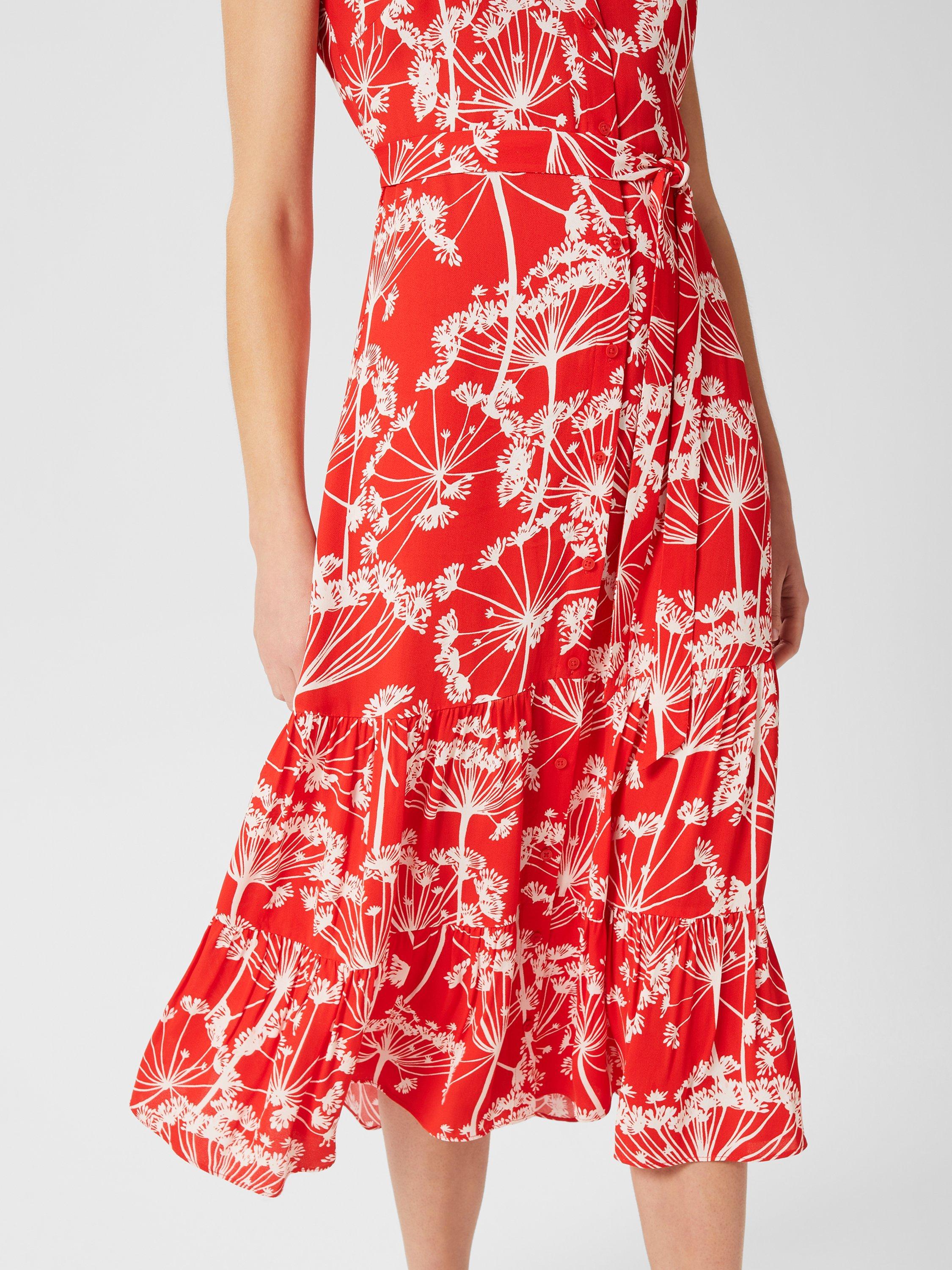 Hobbs Esme Floral Midi Shirt Dress Coral Red Ivory Very well made.