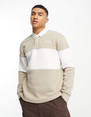 Hollister varsity logo chest stripe relaxed fit rugby polo in tan Brown The Hoxton Trend Very well made.