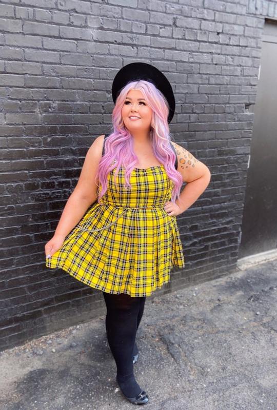 Yellow Plaid Pleated Chain Skirt Plus Size Hot Topic Very well made.