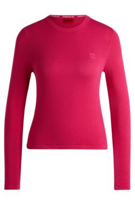 HUGO Knitted cotton sweater with stacked logo embroidery Pink Very well made.