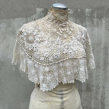 Antique Edwardian Irish Crochet Lace Blouse Cape 3D Flowers Dress Strange Desires Alhambra CA Very well made.