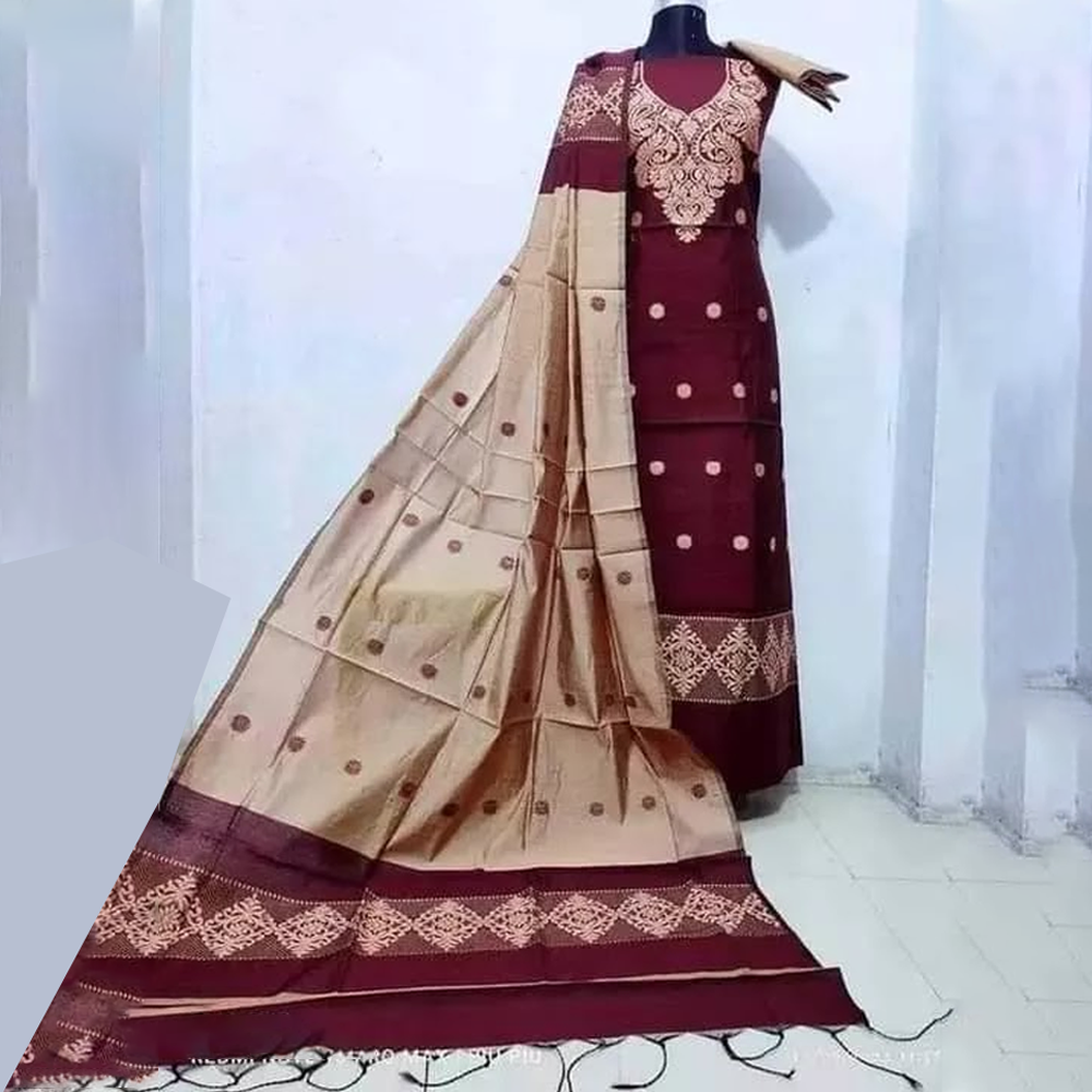 Unstitched Katan Jamdani Salwar Kameez For Women Maroon and Cream SE77 Very well made.