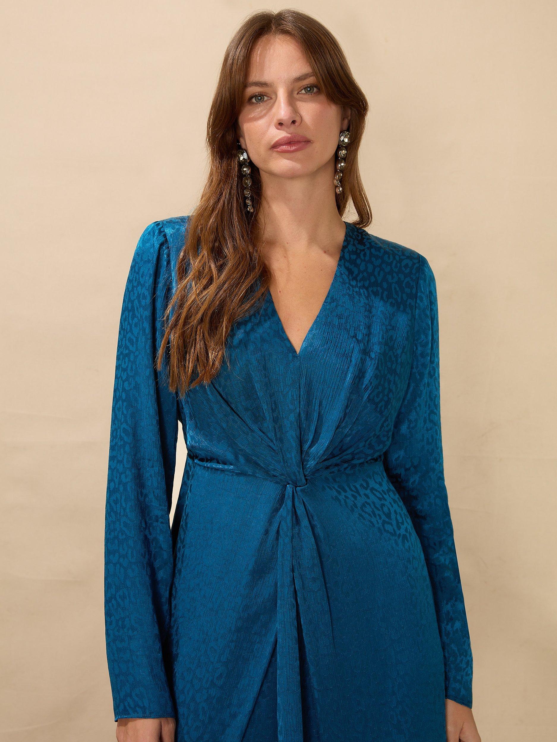 Ro Zo Satin Jacquard Twist Front Mini Dress Blue Very well made.