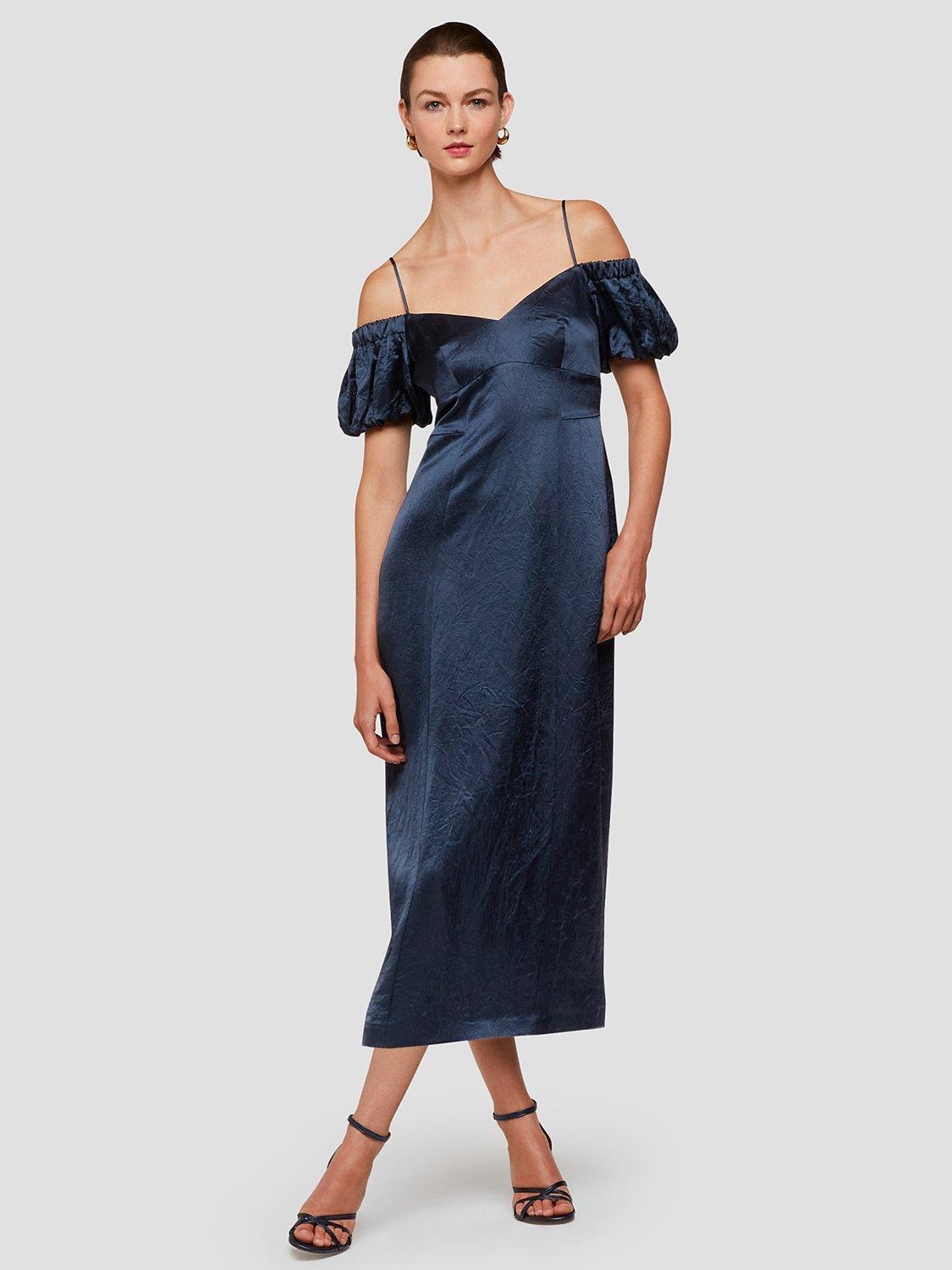 Whistles Faye Satin Bardot Midi Dress Navy Very well made.