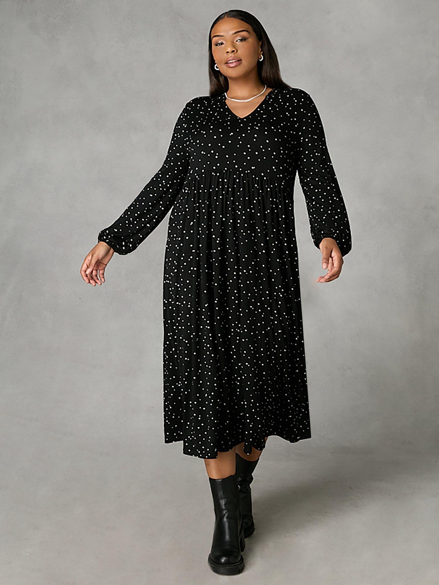 Live Unlimited Curve Mono Star Print Jersey Long Sleeve Midi Dress Black Very well made.
