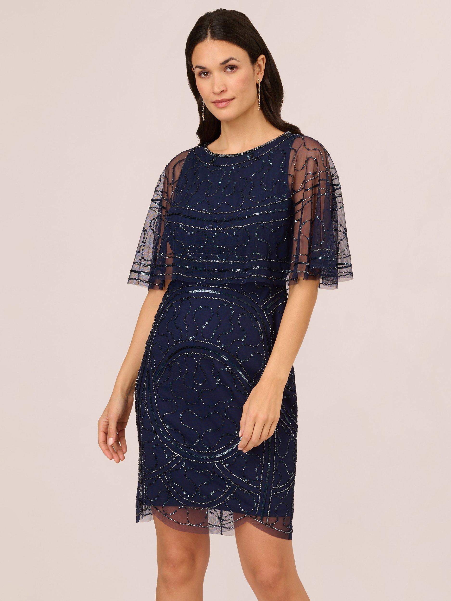 Adrianna Papell Papell Studio Beaded Mesh Mini Dress Light Navy Very well made.