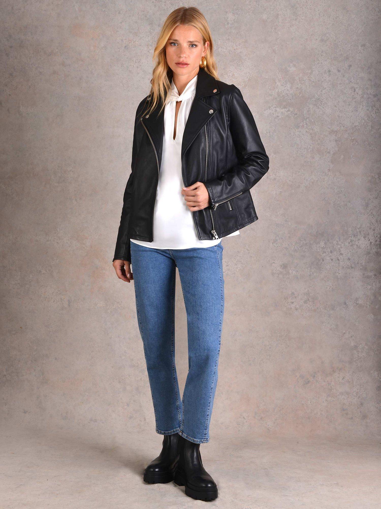 John Lewis Leather Biker Jacket Black Very well made.
