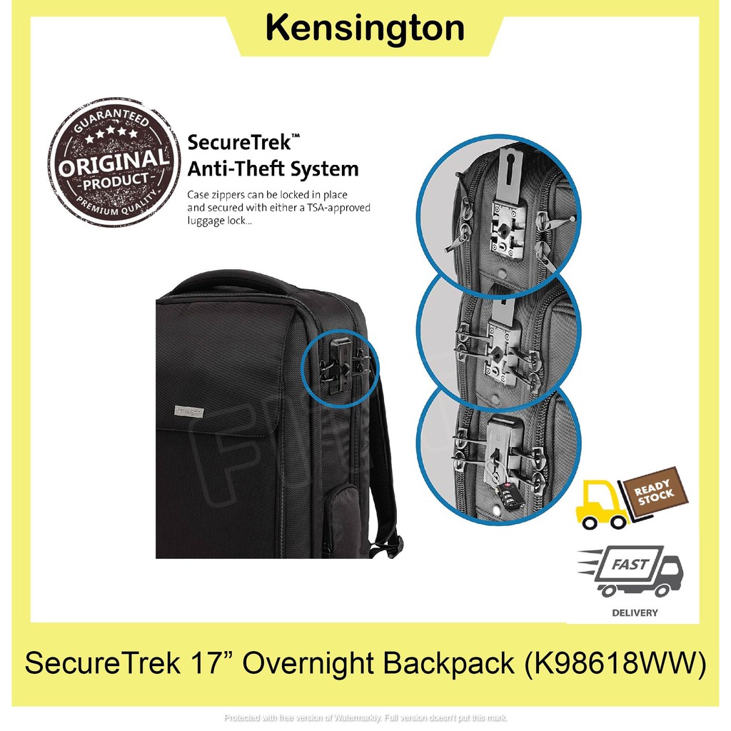 Kensington SecureTrek 17 Lockable Anti Theft Laptop Overnight Backpack K98618WW Color Blk Tamano 17 Inch Guatemala Digital guatemaladigital Very well made.