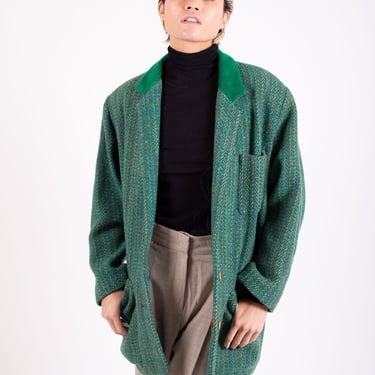 Vintage KENZO 90s Oversized Green Tweed Multi Pocket Blazer with Backroom Clothing Los Angeles CA Very well made.