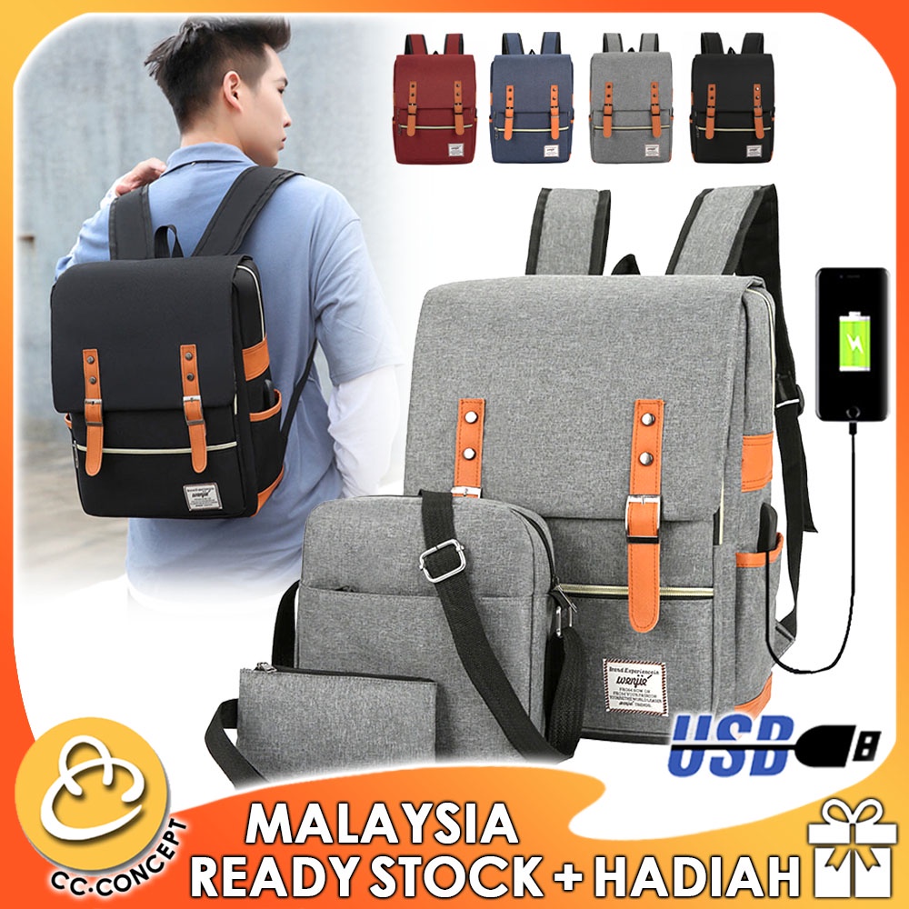 CC CONCEPT 3 in 1 Korea Backpack Laptop Bag USB Travel Bag Shoulder Bag Unisex Men Women School Bag Beg Galas Sekolah Shopee Malaysia Very well made.