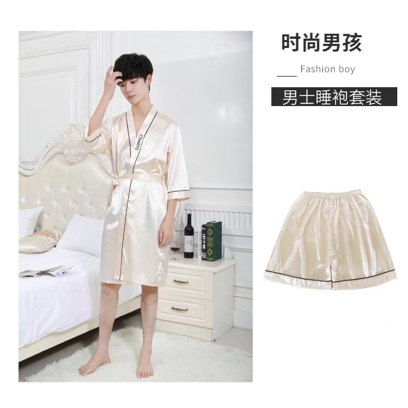 Summer Men s Thin Robe Ice Silk Pajamas Three Quarter Sleeve Bathrobe Silk Loose Korean Style Home Wear Spring and Autumn plus Size GGLJ Shopee Singapore Very well made.