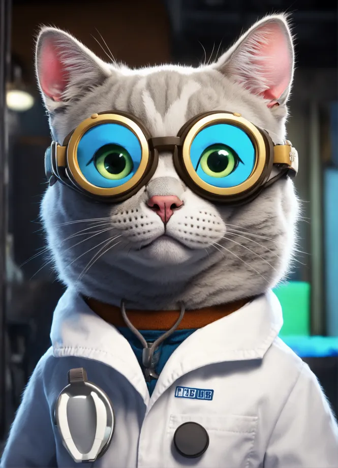 Soviet cat scientist in a lab coat image created in Shedevrum Very well made.