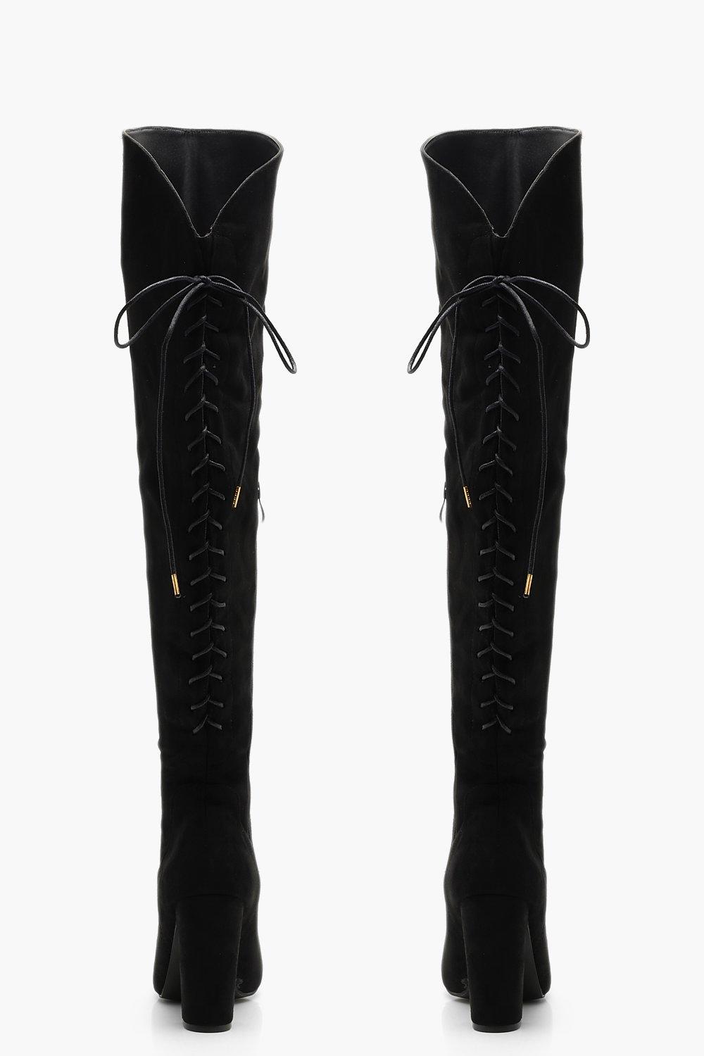 Lace Back Block Heel Over The Knee High Boots Very well made.