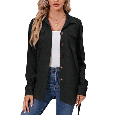 Womens Corduroy Jackets Button Down Shackets Belted Coat Casual Western Oversized Shacket Jacket With Pockets Black s Target Very well made.
