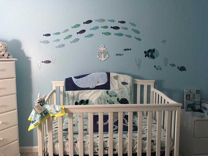 Lambs Ivy Oceania 6 piece Baby Crib Bedding Set Blue Ocean Nautical Aquatic Whale Octopus Theme Target Very well made.
