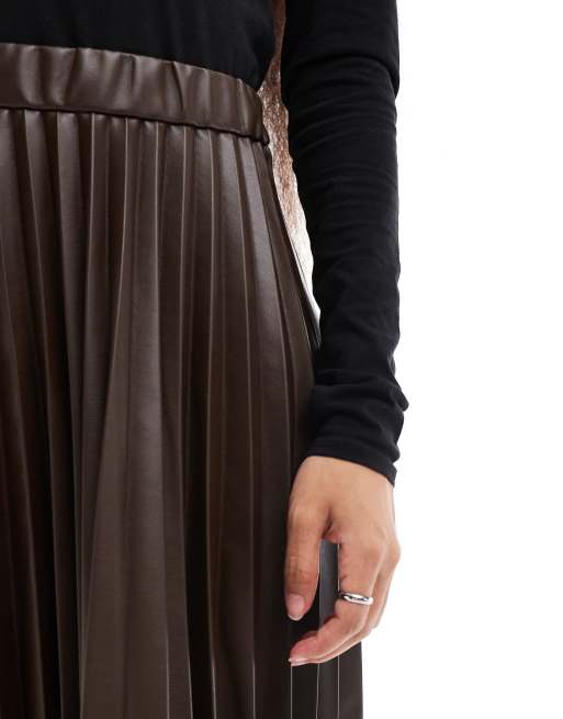 Vila Petite leather look pleated mini skirt in dark chocolate ASOS Very well made.
