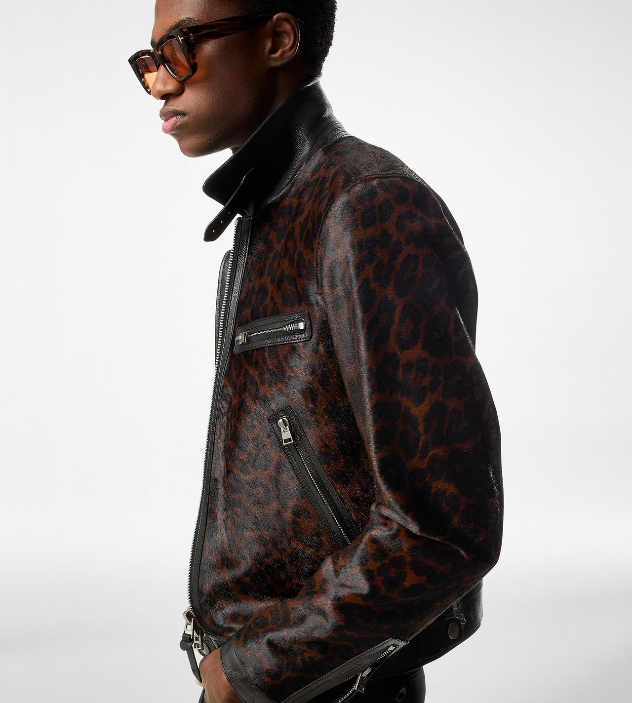 leopard printed pony contrast 4 zip blouson Very well made.