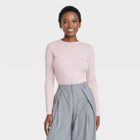 Women s Long Sleeve Ribbed T shirt A New Day Light Pink Xl Target Very well made.
