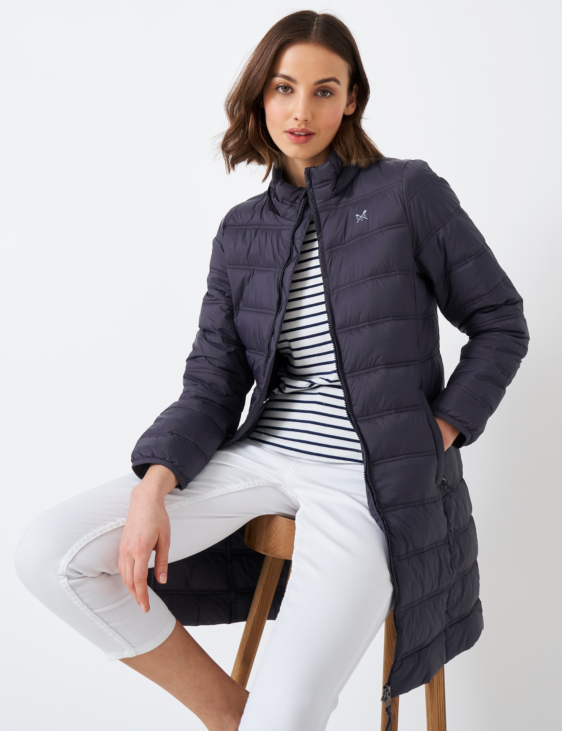 Hooded Lightweight Longline Puffer Jacket Crew Clothing M S Very well made.