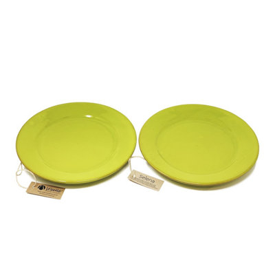 Selena Glazed Hand Dipped Kitchen Dining Set of 2 Dinner Plates Lime Green 25cm DIY at B Q Very well made.