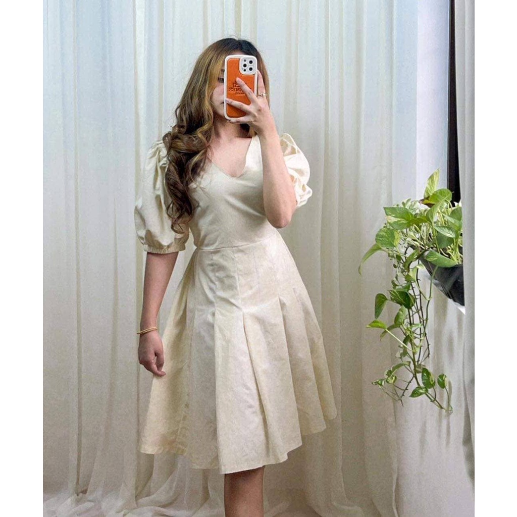 Cotton Linen Puff Sleeve Dress Vneck Shopee Philippines Very well made.