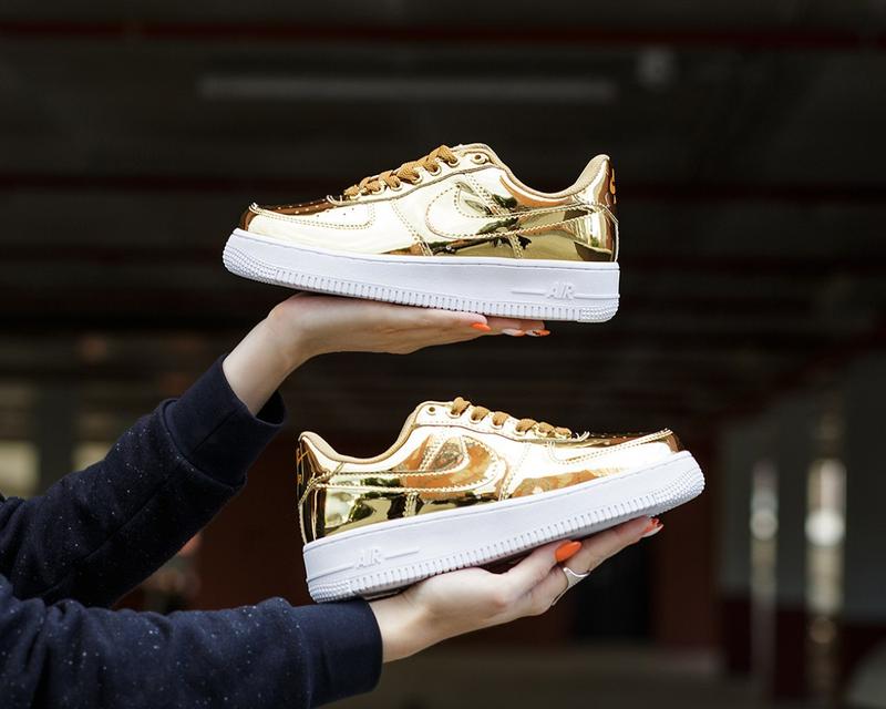 NIKE WMNS Air Force 1 SP Liquid Metal metallic gold sneaker at solebox Very well made.