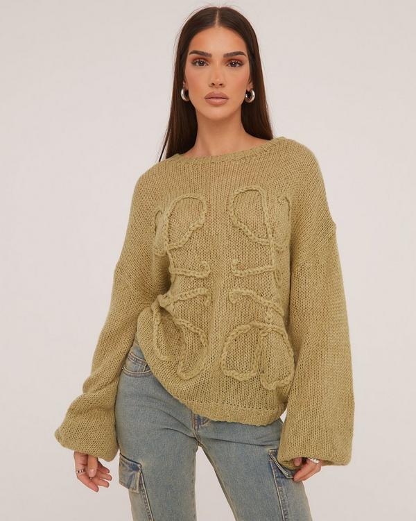 Long Sleeve Swirl Detail Jumper In Olive Green Knit EGO Very well made.