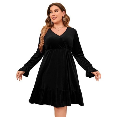 Plus Size Velvet Dress Women V Neck Wrap Dress Long Sleeve Babydoll Fall Dress Ruffle Hem Cocktail Party Dress Target Very well made.